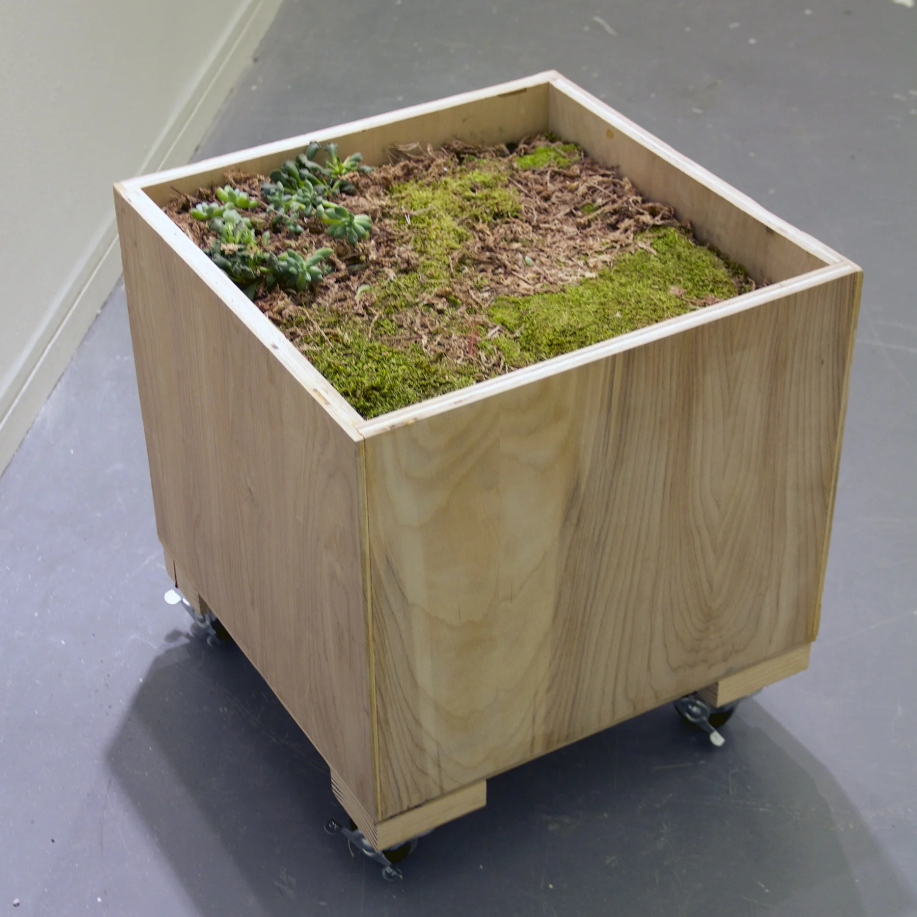 A piece created as part of an exploration of dystopia, but also as a response to contemporary inhospitable living situations. My own living situation at the time I built the park was in response to a life surrounded by concrete. A tiny place for a little green, a little solace, that is still ridiculously, humorously inadequate.
